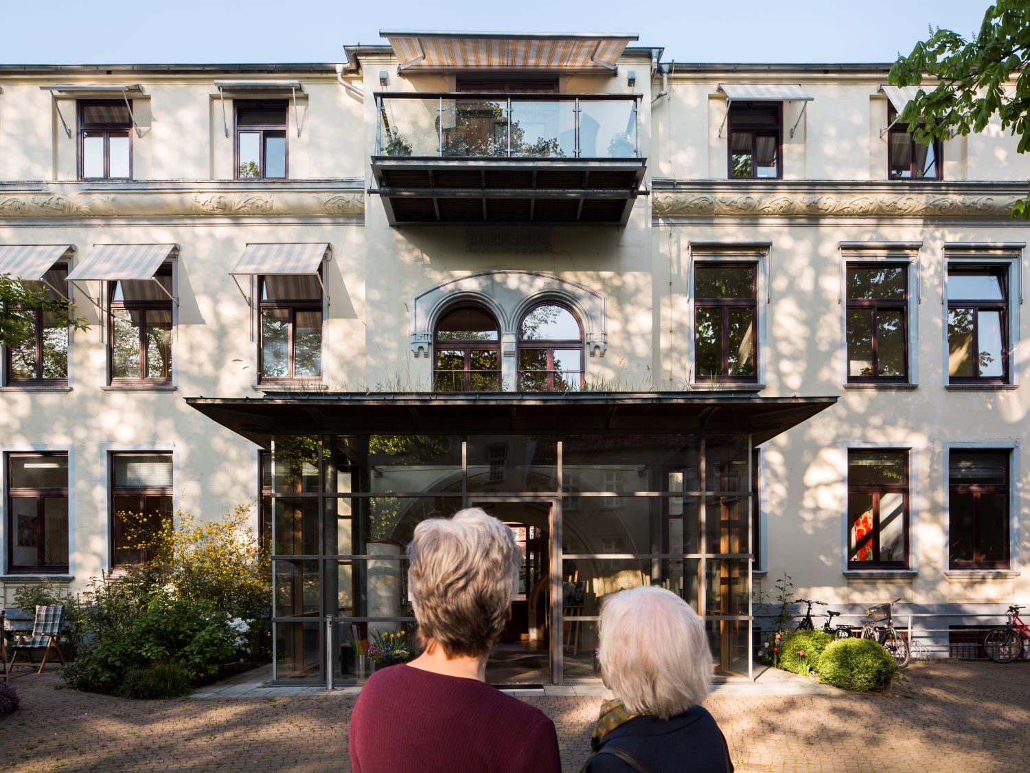 Die Suche nach einer geeigneten Immobilie erwies sich als sehr schwierig. Man brauchte ja ein Gebäude, das groß genug und von den baulichen Gegebenheiten geeignet war, um 16 Gäste in ihren letzten Tagen bestmöglich zu begleiten. Im Jahr 1997 ist dann das Helenenstift in Altona gefunden worden. Die Immobilie stand leer – vorher war es ein Pflegeheim der DRK-Schwesternschaft und davor ein Krankenhaus mit Kreißsaal gewesen. Aber das Gebäude Helenenstift war damals in keinem guten Zustand. Es musste also massiv umgebaut und modernisiert werden.